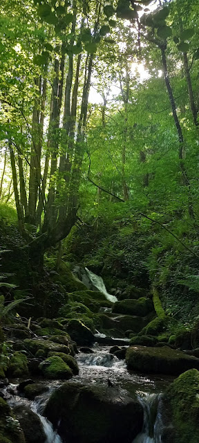 Por el camino armado que sigue el cauce del rio Rozaliego con varios pinganones (saltos o cascadas) que es difícil ver por la exuberante vegetación de primavera. Gracias a Silvino puedo acercarme al rio y conocer uno de estos pinganones: